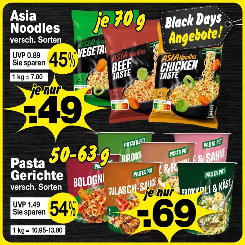 Asia oder Pasta Gerichte